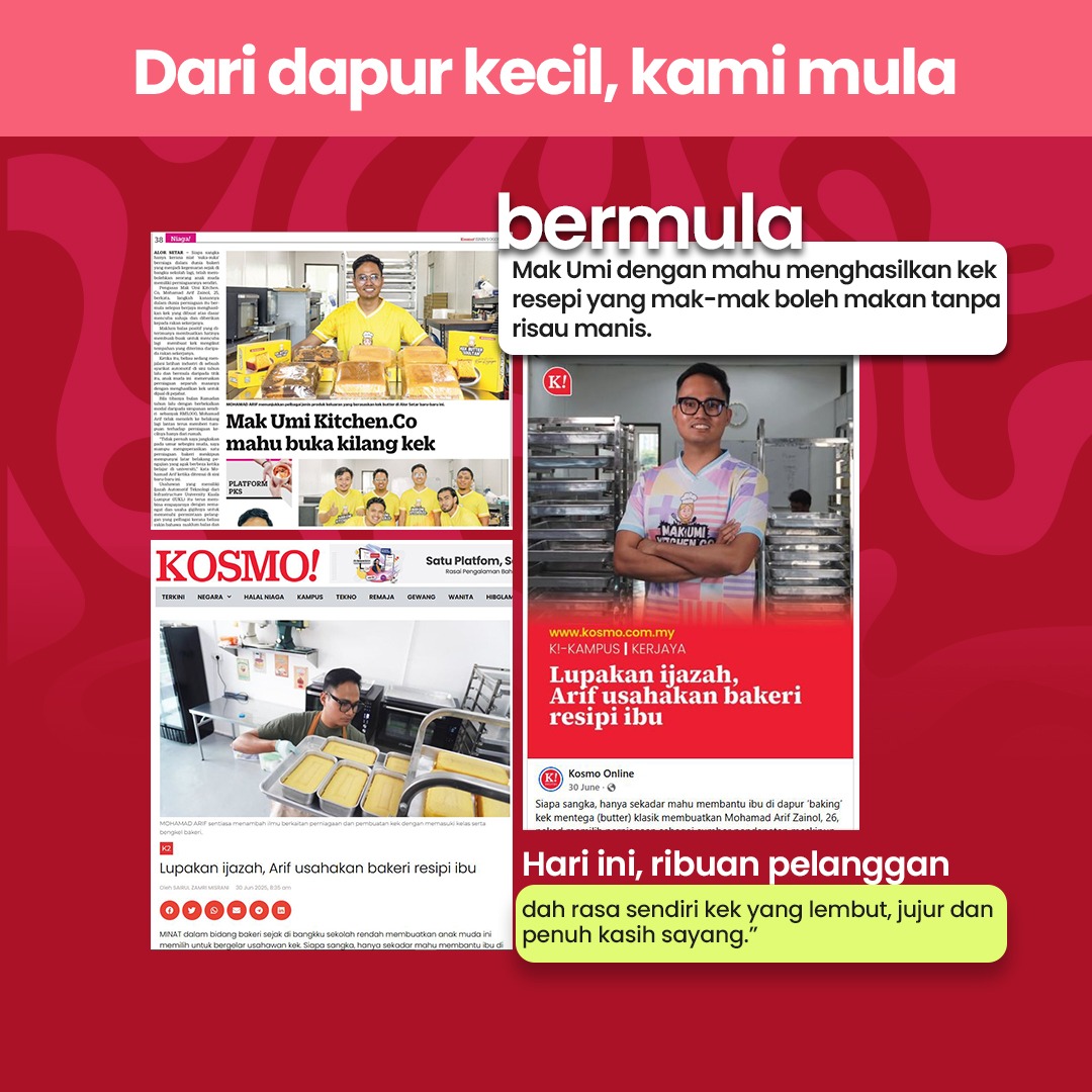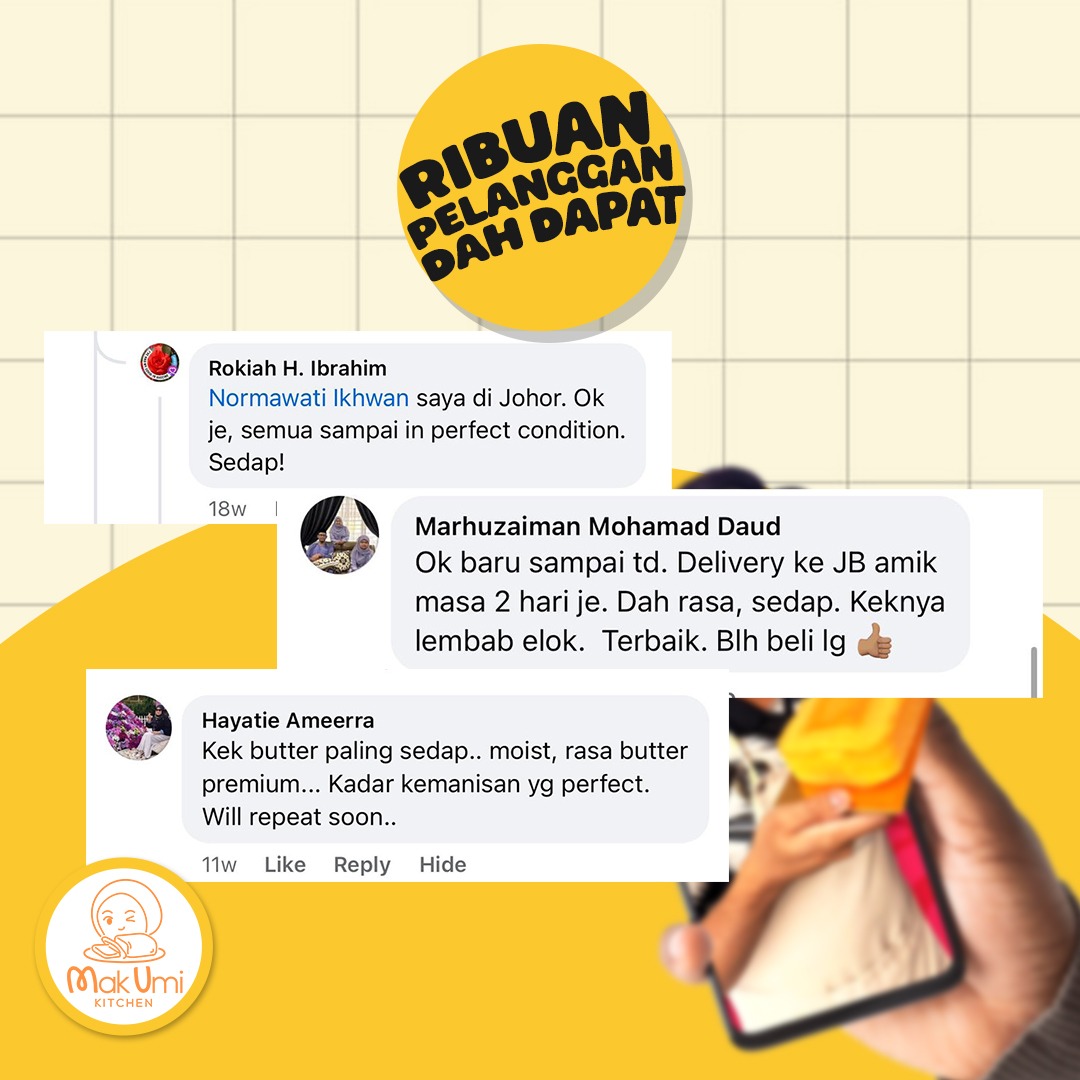 “Terbaik Mak Umi Kitchen. Kek fresh macam baru bakar. Nampak effort packaging tu jaga kualiti.”